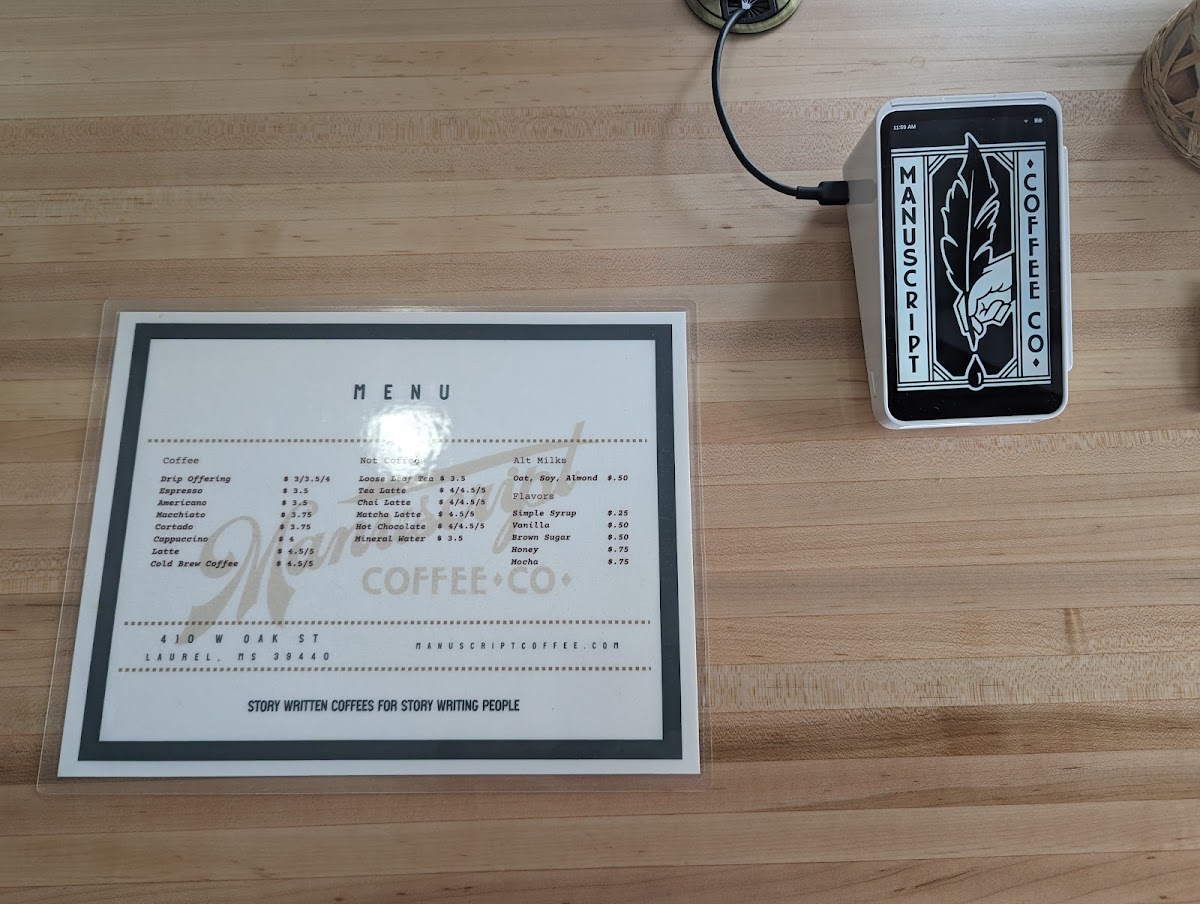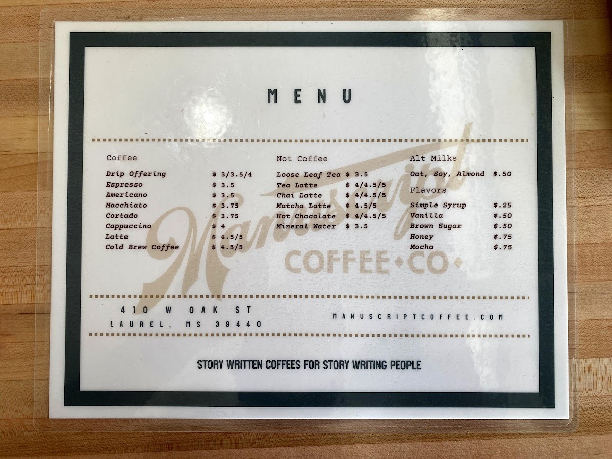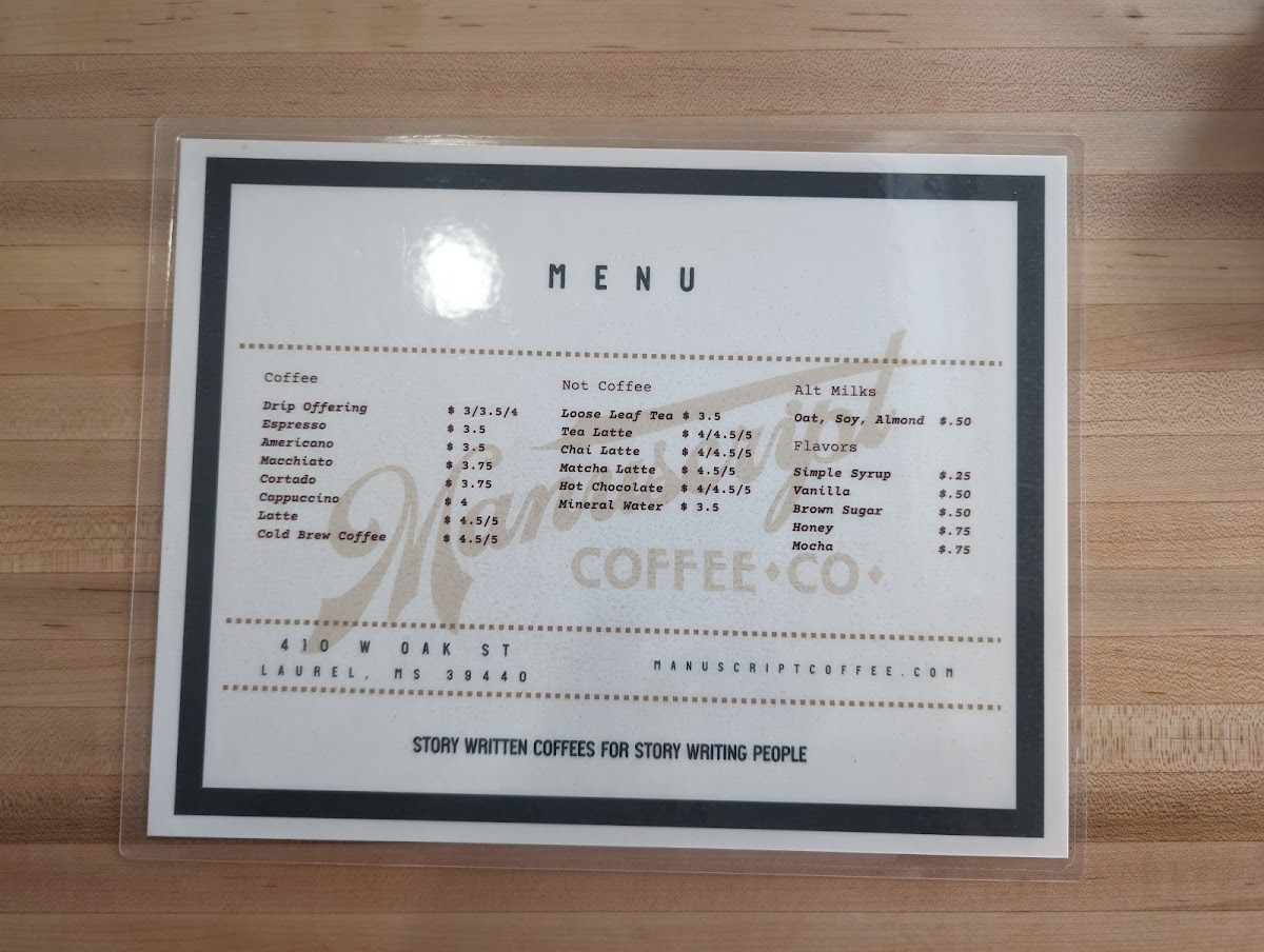 Manuscript Coffee Menu